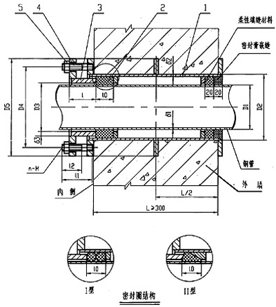 02S404柔性防水套管一般適用于管道穿過墻壁之處受有振動(dòng)或有嚴(yán)密防水要求的構(gòu)筑物;剛性防水套管一般適用于管道穿過墻壁之處要求一般防水的構(gòu)筑物;柔性及剛性防水套管穿墻處之墻壁,如遇非混凝土?xí)r應(yīng)改用混凝土墻壁,而且必須將套管一次凝固于墻內(nèi);防水套管施用于建筑、化工、鋼鐵、自來水、污水處理等單位。